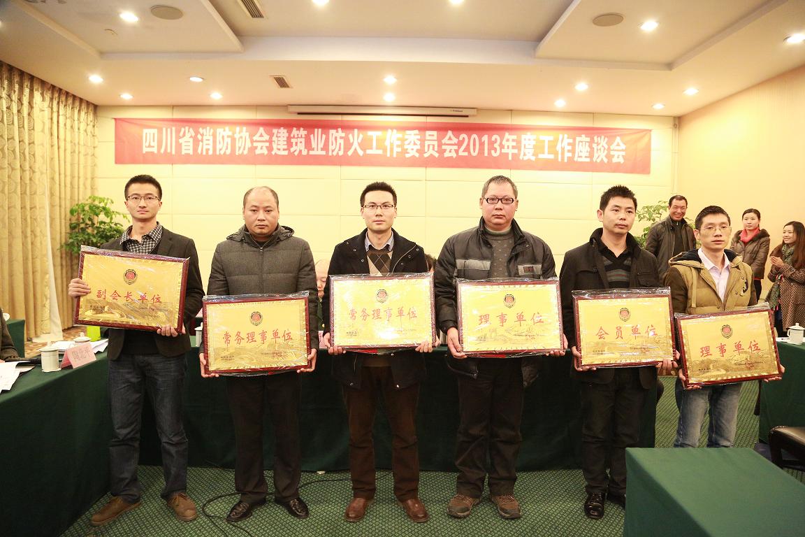 會議期間,協(xié)會會長侯自強為專委會新任主任(會長)何勇頒發(fā)證書并授牌,協(xié)會領(lǐng)導(dǎo)為專委會新加入會員單位:四川正科通風(fēng)空調(diào)設(shè)備安裝工程有限公司、四川省環(huán)視實業(yè)總公司、四川裕安消防工程有限公司、四川佳宜消防工程有限公司、四川明輝建筑工程有限公司、四川省鴻茂建筑工程有限責(zé)任公司、四川丹棱永恒消防工程有限公司分別頒發(fā)證書并授牌。會上,與會領(lǐng)導(dǎo)與全體參會代表合影留念。?
