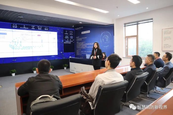 ??????? 武珊珊,劉欣河為楊院長一行介紹了辰安天澤服務(wù)模式、創(chuàng)新技術(shù)及核心消防安全產(chǎn)品,楊院長一行重點(diǎn)聽取了消防社會(huì)化一站式托管服務(wù)內(nèi)容,全面深入了解了辰安天澤的創(chuàng)新消防服務(wù)模式,并現(xiàn)場參觀了值守監(jiān)測中心,對辰安天澤三側(cè)軟件系統(tǒng)和相關(guān)流程進(jìn)行了了解。