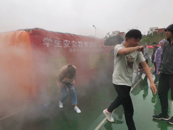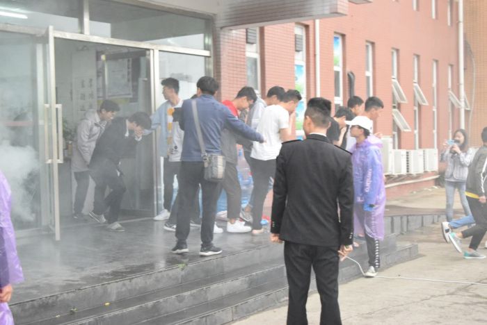 會(huì)后,按照制定的消防演練活動(dòng)方案,周雷教官現(xiàn)場講解了火場逃生要點(diǎn)及進(jìn)入模擬火場賬篷注意事項(xiàng),組織大家依次進(jìn)入模擬火場賬篷體驗(yàn)火災(zāi)現(xiàn)場,進(jìn)行逃生疏散演練。演練途中雨勢雖大,但也阻擋不了師生對(duì)消防演練的熱情;演練結(jié)束后周雷老師帶領(lǐng)學(xué)生在宿舍樓開展了疏散逃生。