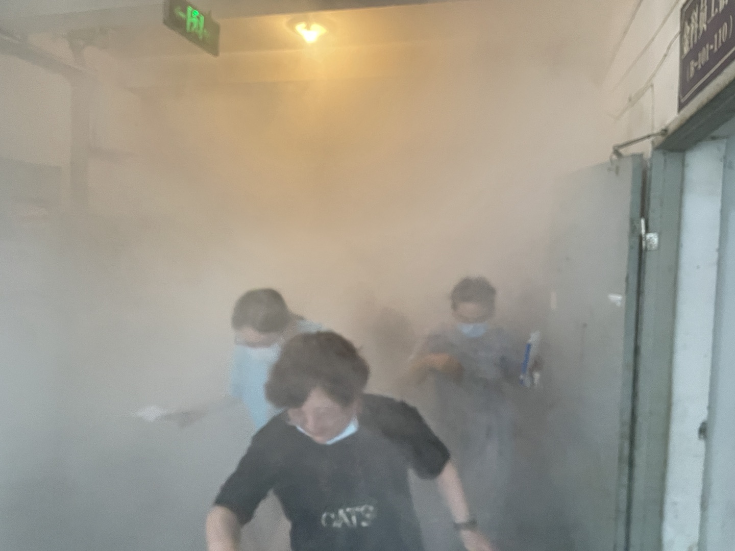 伴隨著警報(bào)聲響起,各負(fù)責(zé)人按照應(yīng)急預(yù)案既定的疏散路線迅速進(jìn)行撤離,全體人員在教官的引領(lǐng)下彎著腰,用毛巾捂住口鼻,緊貼墻根和樓梯扶手,沿著指定逃生路線安全、快速、有序地從安全出口撤離。