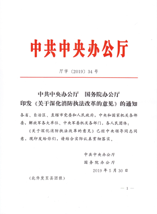 轉(zhuǎn)發(fā) 中共中央辦公廳 國務(wù)院辦公廳關(guān)于印發(fā)《關(guān)于深化消防執(zhí)法改革的意見》的通知